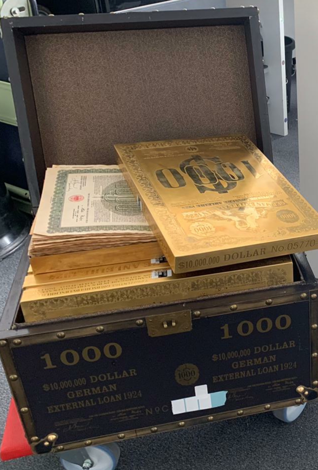 50. Zimbabwe Gold and Blue Zim Quads Notes, Boxes and Containers.
